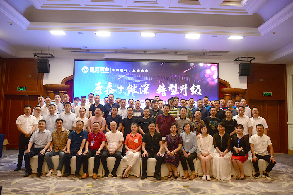 在結(jié)束各項(xiàng)會(huì)議議程后,為期一天的“康泰集團(tuán)第七期重點(diǎn)經(jīng)銷商研討、交流會(huì)”在各位重點(diǎn)經(jīng)銷商的大力支持下圓滿結(jié)束并取得了預(yù)期的效果??堤┘瘓F(tuán)致力于做“中國(guó)塑膠管道工程集采第一供應(yīng)商”的發(fā)展定位,以“為城市建設(shè)集成供應(yīng)生態(tài)管道系統(tǒng),管通全球”的企業(yè)使命,打造實(shí)現(xiàn)“百億康泰、百年康泰,中國(guó)民營(yíng)企業(yè)500強(qiáng)”,全面構(gòu)建實(shí)現(xiàn)品質(zhì)康泰、智能康泰、生態(tài)康泰、康泰+跨越發(fā)展。我們相信,在林總裁的帶領(lǐng)下,在全體經(jīng)銷商的通力協(xié)作下,我們一定能全面完成2019年的銷售目標(biāo),共同譜寫康泰集團(tuán)未來(lái)發(fā)展新篇章。