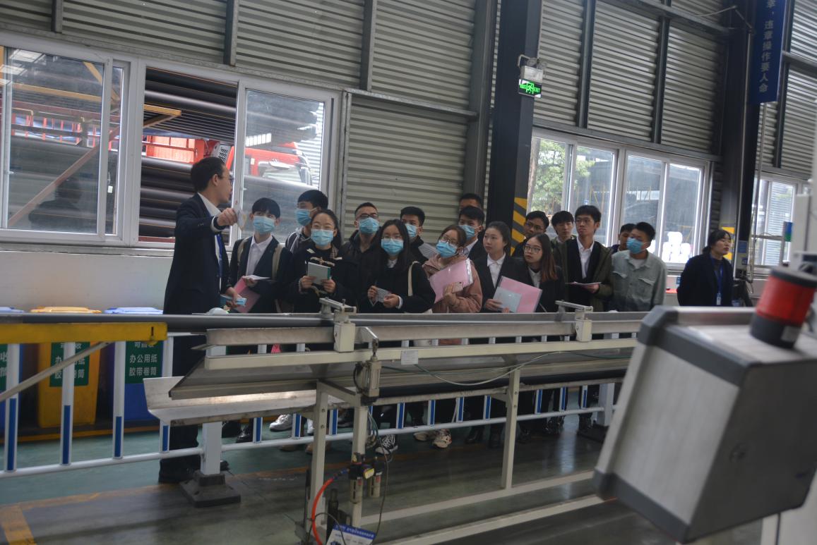 隨后,集團(tuán)銷售中心副主任王珊,成都子公司生產(chǎn)技術(shù)部唐輝軍帶領(lǐng)同學(xué)們進(jìn)行了廠區(qū)參觀。在車間里,同學(xué)們一邊聽著講解,一邊興致盎然的參觀著生產(chǎn)作業(yè)現(xiàn)場,如此真實的近距離感受,再結(jié)合兩位老師生動的解說,同學(xué)們驚嘆于康泰集團(tuán)的生產(chǎn)規(guī)模以及現(xiàn)代化生產(chǎn)水平;參觀過程中,同學(xué)們不忘拿出工作人員提前為他們準(zhǔn)備好的互動問答卡片,積極思考并與解說老師進(jìn)行互動,老師的耐心講解使得同學(xué)們受益匪淺。