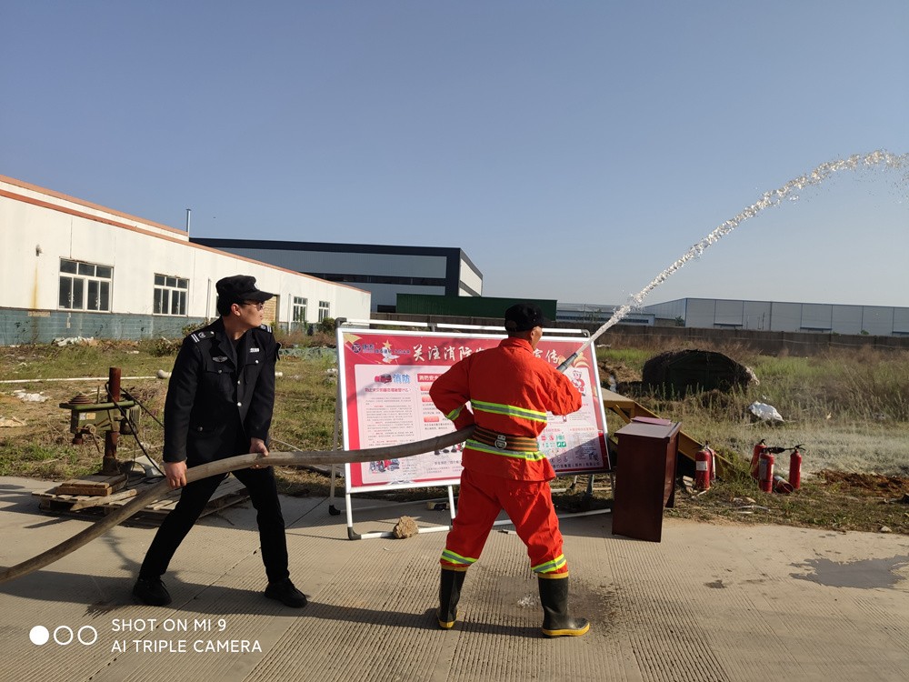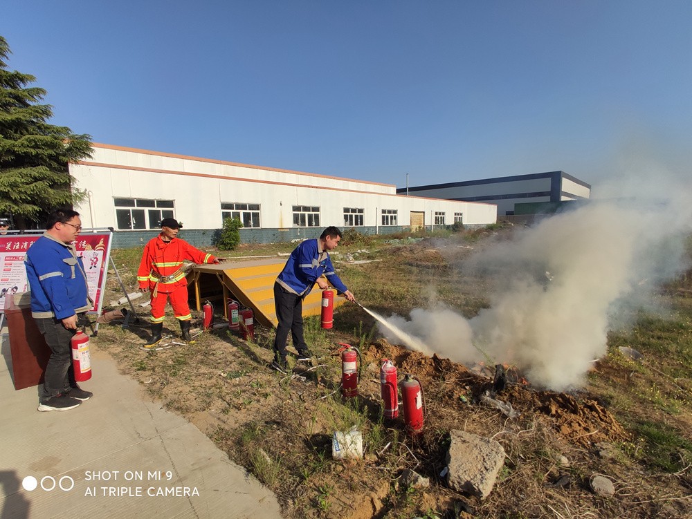 在演習(xí)活動(dòng)前,首先向公司班組長以上員工講解了消防器材、維護(hù)以及使用的方法。演習(xí)模擬庫房空地起火冒出一股濃煙。“火災(zāi)啟動(dòng)緊急信號!火災(zāi)啟動(dòng)緊急信號!現(xiàn)在設(shè)備區(qū)發(fā)生火災(zāi),請大家不要驚慌,不要擁擠,聽從疏散人員指揮,迅速從安全出口疏散?!彪S著一聲叫喊,值班人員(扮演)迅速啟動(dòng)公司消防應(yīng)急預(yù)案,撥打119火警電話,請求支援,并通知有關(guān)人員撤離疏散。成功疏散人員之后,工作人員手持滅火器進(jìn)入院內(nèi)對起火點(diǎn)進(jìn)行滅火,消防應(yīng)急小分隊(duì)利用消防栓水滅火,時(shí)間控制火勢蔓延。經(jīng)過一番緊張的撲救,終于明火被完全撲滅,3分鐘后,隨著濃煙漸漸散去,演習(xí)取得圓滿成功。