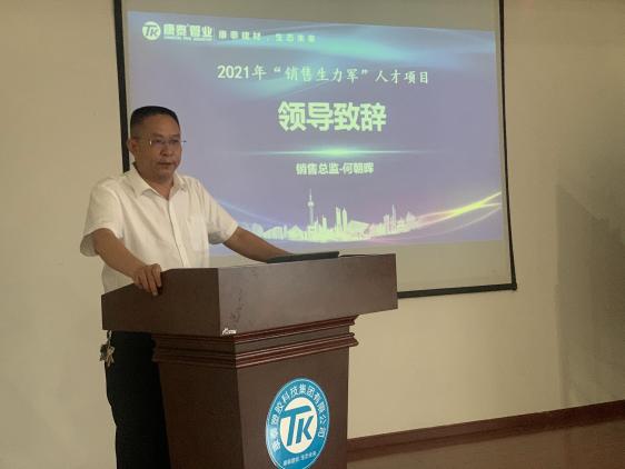 伴隨著入職測評及面試的結(jié)果出爐,6月1日上午8:00,康泰集團(tuán)第六期“銷售生力軍”人才項目正式開營,開營儀式上,首先由集團(tuán)銷售總監(jiān)何朝暉先生致開營動員講話,何總首先對銷售生力軍的加入表示了歡迎。并向大家介紹了塑膠管道行業(yè)及康泰的營銷戰(zhàn)略,并表示,做營銷,首先要了解行業(yè)、產(chǎn)品,更要全面熟悉、了解康泰的發(fā)展歷程、企業(yè)文化和發(fā)展戰(zhàn)略,聚焦塑膠管道未來的發(fā)展趨勢,從而在日后的營銷戰(zhàn)場上做到戰(zhàn)必勝,勝必果。