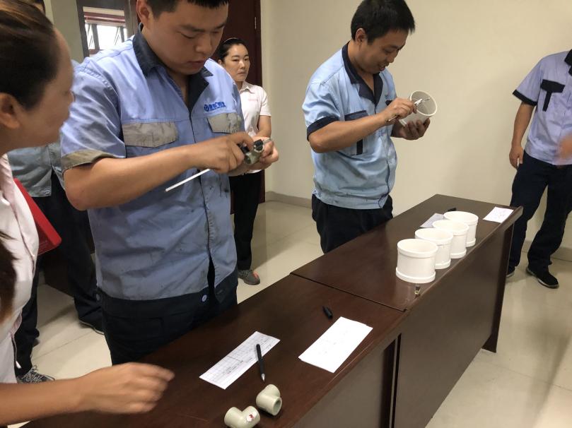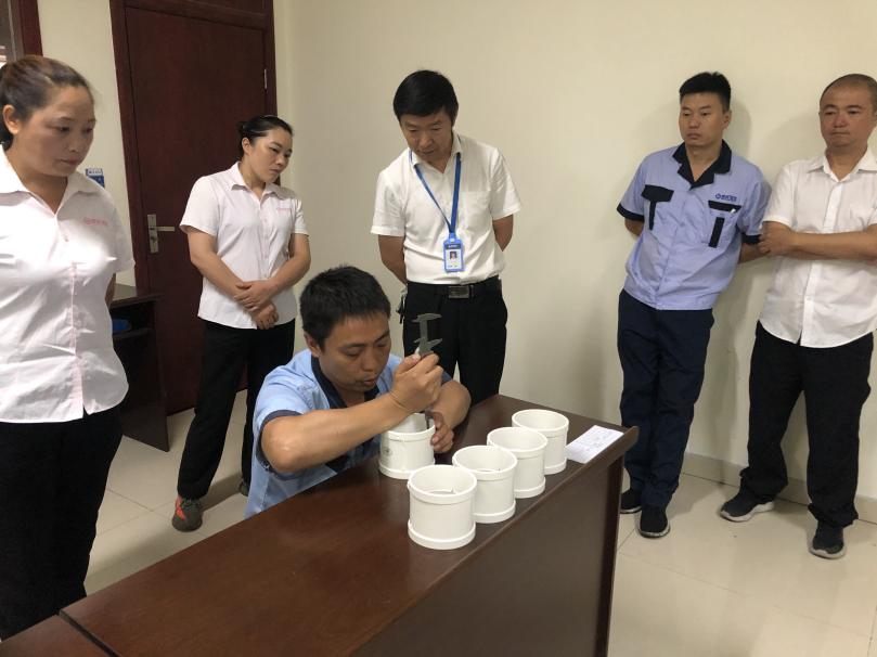 活動(dòng)開始前由質(zhì)量系統(tǒng)副總監(jiān)徐水平、質(zhì)量部長(zhǎng)李偉,分別對(duì)“質(zhì)量月”活動(dòng)的由來、意義、目的和比賽的規(guī)則、比賽內(nèi)容作了講解和介紹。比賽內(nèi)容要求:1、測(cè)量產(chǎn)品標(biāo)樣由車間質(zhì)量部班長(zhǎng)(甘艷君、周鳳瓊、吳海燕)提供,標(biāo)注序號(hào)、測(cè)量位置;2、參賽人員使用同一標(biāo)樣,同一儀器,測(cè)量同一位置,進(jìn)行測(cè)量結(jié)果數(shù)據(jù)統(tǒng)計(jì),并記錄;3、質(zhì)量部部長(zhǎng)李偉帶領(lǐng)的評(píng)委團(tuán),對(duì)參賽人員的測(cè)量手法正確度、測(cè)量?jī)x器熟練度和測(cè)量結(jié)果進(jìn)行考核評(píng)比。