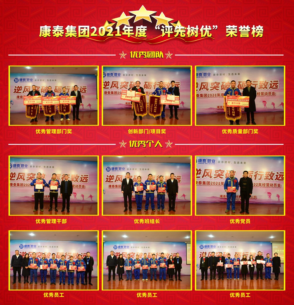 站在2022年的起點(diǎn)回望2021年,無(wú)疑是翻天覆地的一年。這一年,我們見(jiàn)證了國(guó)內(nèi)塑膠建材市場(chǎng)從高熱狀態(tài)到深度調(diào)整的轉(zhuǎn)變;這一年,我們也經(jīng)歷了“碳中和”、“工業(yè)限電”、“原材料上漲”給制造業(yè)帶來(lái)的變革加速?!八忌罘揭孢h(yuǎn),謀定而后動(dòng)?!睘榱俗吆?022年開(kāi)局第一步,康泰集團(tuán)總部基地在新舊年份交接之際召開(kāi)年會(huì),復(fù)盤(pán)過(guò)去一年的成果業(yè)績(jī)、工作難點(diǎn)及應(yīng)對(duì)策略,肯定了過(guò)去一年來(lái)取得的佳績(jī)并就此進(jìn)行了年度頒獎(jiǎng)。