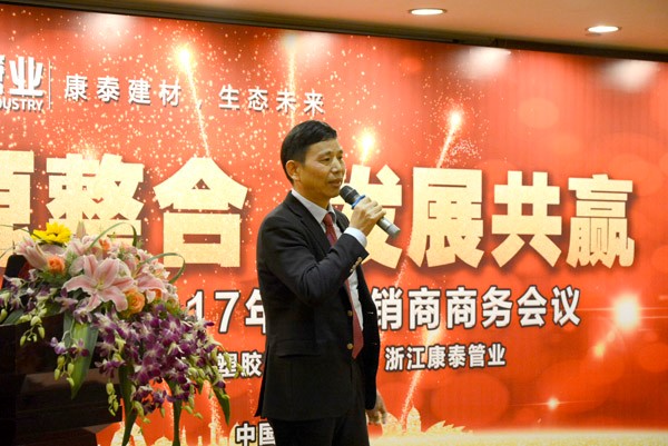 ? ? ? ?會(huì)上,集團(tuán)總裁特別助理兼市場(chǎng)總監(jiān)鄭光鏵向大會(huì)作了《整合資源、開放平臺(tái)、實(shí)現(xiàn)共贏》主題報(bào)告。報(bào)告開宗明義首先強(qiáng)調(diào)了本次會(huì)議的不同之處。本次會(huì)議雖然是一年一度的例行會(huì)議,但是我們每年面臨的經(jīng)濟(jì)形勢(shì)、市場(chǎng)形勢(shì)、企業(yè)形勢(shì)以及經(jīng)銷商面臨的挑戰(zhàn)和機(jī)遇,都在發(fā)生翻天覆地的變化,年年歲歲都不相同。我們已經(jīng)來到了一個(gè)新經(jīng)濟(jì)時(shí)代、新跨越時(shí)代。會(huì)上,鄭總從盤點(diǎn)2016、形勢(shì)解讀、市場(chǎng)預(yù)測(cè)、發(fā)展趨勢(shì)、目標(biāo)舉措、整合資源、共謀發(fā)展、展望未來八個(gè)維度全面闡釋了召開本次會(huì)議的重要目的和意義。那就是要帶領(lǐng)廣大經(jīng)銷商一起來認(rèn)清形勢(shì)、清晰自我、轉(zhuǎn)變思維、整合資源,共同打通上下游產(chǎn)業(yè)資源。今天的康泰也將以率先的思維和理念,在面對(duì)利潤(rùn)下滑、挑戰(zhàn)與機(jī)遇并存的艱難時(shí)刻,進(jìn)一步清晰目標(biāo)戰(zhàn)略,找準(zhǔn)發(fā)展方向,與廣大經(jīng)銷商一起,轉(zhuǎn)型升級(jí)、布局未來,共謀發(fā)展。