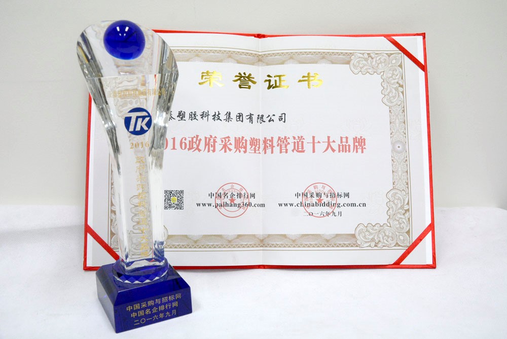 康泰榮獲“2016政府采購塑料管道十大品牌”稱號(hào)