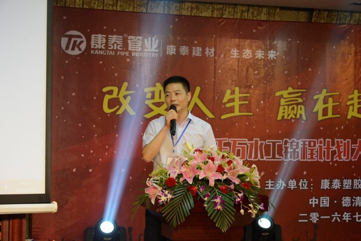 ? ? ? ?會(huì)上,浙江基地總經(jīng)理潘明正首先致詞,代表康泰集團(tuán)對(duì)各位嘉賓的到來表示熱烈的歡迎和衷心的感謝,并預(yù)祝會(huì)議取得圓滿成功,祝各位水電大師前程似錦,事業(yè)蒸蒸日上。