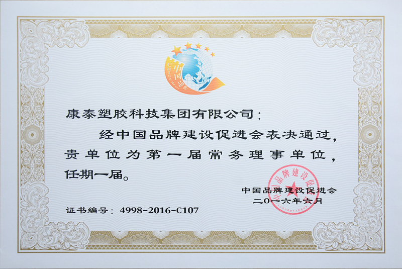 ? ? ? ?6月15日-17日,由中國品牌建設(shè)促進會主辦的“2016年度全國品牌建設(shè)研討會”在廈門召開。會上,康泰塑膠科技集團被評為“中國品牌先進會員單位”,同時授予康泰塑膠科技集團及林云青董事長“第一屆常務(wù)理事單位”和“第一屆常務(wù)理事”榮譽稱號。