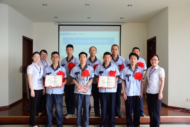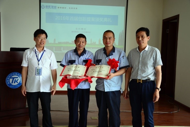 ? ? ? ?會(huì)上,林總裁和生產(chǎn)總監(jiān)洪青成對(duì)線管車間“3號(hào)、4號(hào)自動(dòng)混料機(jī)創(chuàng)新和能源節(jié)約改善”、“3號(hào)、4號(hào)塑料機(jī)由人工改為自動(dòng)化系統(tǒng)”兩個(gè)創(chuàng)新項(xiàng)目進(jìn)行了表彰。獲表彰的線管車間主任羅陽(yáng)明代表獲獎(jiǎng)單位作了發(fā)言。