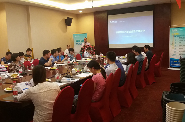 ? ? ? ? 5月20日下午四點(diǎn),康泰集團(tuán)2016年度西安區(qū)域設(shè)計(jì)系統(tǒng)聯(lián)誼會(huì)在西安唐朝酒店召開??堤┘瘓F(tuán)市場(chǎng)總監(jiān)鄭光鏵、銷售總監(jiān)何朝暉、技術(shù)研發(fā)總監(jiān)張雙全、市場(chǎng)中心新品推廣經(jīng)理趙謙、西安分公司經(jīng)理鄒鑫及分公司同事等出席了本次會(huì)議。會(huì)議的召開是為了進(jìn)一步增進(jìn)與西安設(shè)計(jì)系統(tǒng)的溝通和聯(lián)系,加大新技術(shù)成果轉(zhuǎn)化,答謝設(shè)計(jì)系統(tǒng)專家對(duì)康泰集團(tuán)一直以來的支持而舉辦的。
