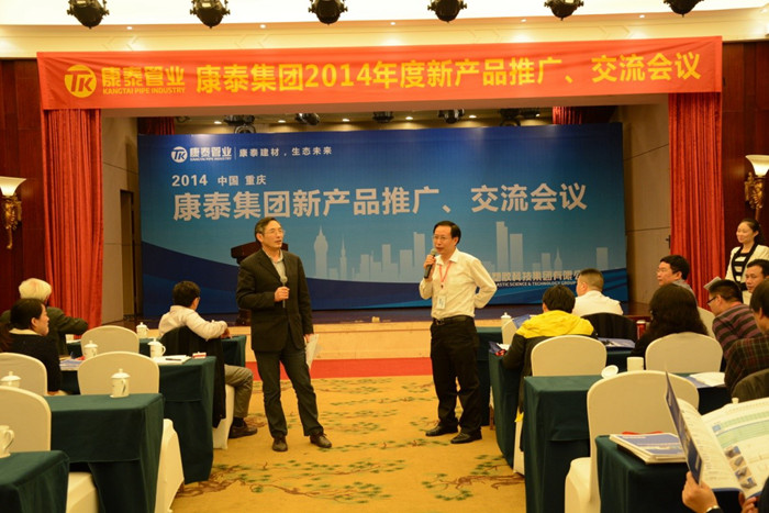 ???????此次康泰集團(tuán)2014年度新品(重慶)推廣、交流會(huì)議主題鮮明,宣傳海報(bào)林立、設(shè)置了新產(chǎn)品展示區(qū),集中展示康泰集團(tuán)2014年度研發(fā)的環(huán)保MPE、MPVE?排污管道系統(tǒng)、PP超靜音排水、排污管道系統(tǒng)、HDPE同層排水管道系統(tǒng)、加強(qiáng)型漩流降噪特殊單立管道系統(tǒng)五款新產(chǎn)品。歷時(shí)2.5小時(shí)的會(huì)議秉承“康泰建材,生態(tài)未來(lái)”,堅(jiān)持“科技、質(zhì)量、價(jià)值、共贏”的市場(chǎng)競(jìng)爭(zhēng)理念,致力于成為生態(tài)建材行業(yè)領(lǐng)導(dǎo)者企業(yè)。發(fā)展是永恒的主題,合作是時(shí)代的潮流。康泰以此次新品推廣交流會(huì)為契機(jī),共筑交流平臺(tái),以更加開放靈活的理念,更加務(wù)實(shí)的作風(fēng),更加科學(xué)完善的研發(fā)推廣政策,加強(qiáng)與社會(huì)各界合作交流,共同推進(jìn)行業(yè)的高標(biāo)準(zhǔn),可持續(xù)發(fā)展。會(huì)議高效、緊湊,圓滿結(jié)束。