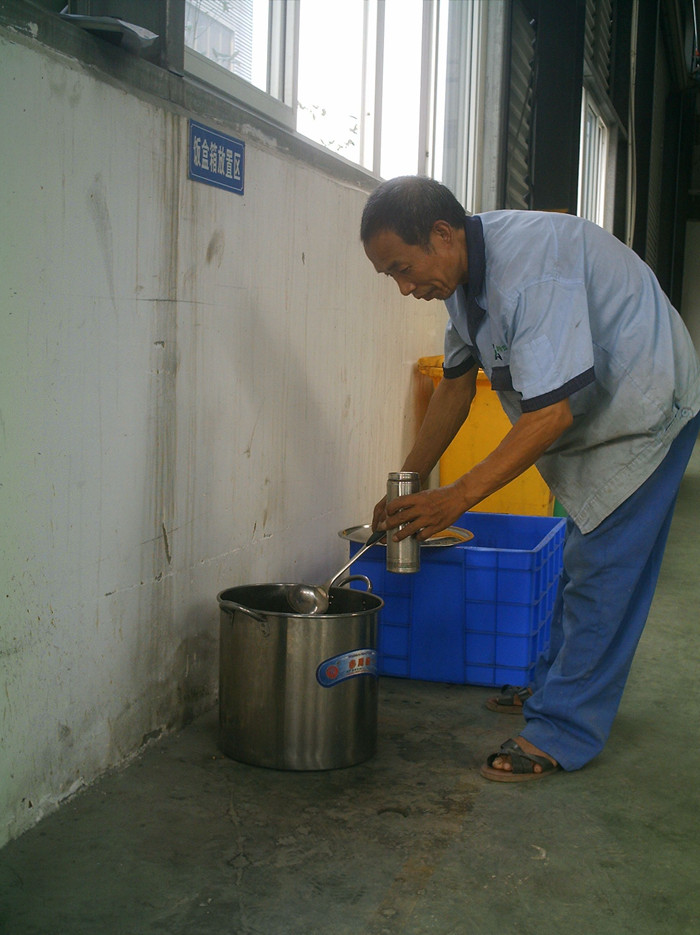 ??? 炎炎夏日,辛勤的員工們依舊堅守在工作崗位。這時,一杯綠豆湯能為他們清熱消暑,解除高溫帶給身體的疲憊。2013年8月22日,在管件車間,記者見到員工鄧火全正在舀綠豆湯,并向他了解夏季公司為員工準(zhǔn)備綠豆湯的具體情況。