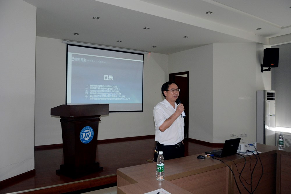 研發(fā)總監(jiān)張雙全重點(diǎn)推介了康泰的海綿城市系統(tǒng)和康泰獨(dú)家研發(fā)、國(guó)內(nèi)首創(chuàng)的MPVE?系統(tǒng)。講解中,張總從設(shè)計(jì)理念、開發(fā)背景、技術(shù)特點(diǎn)、產(chǎn)品原料、生產(chǎn)設(shè)備安裝操作、性能對(duì)比、實(shí)驗(yàn)分析、應(yīng)用領(lǐng)域、工程案例應(yīng)用等方面分別作了詳實(shí)介紹。同時(shí)介紹了已經(jīng)取得的專利成果,闡述了以市場(chǎng)需求、國(guó)家政策和先進(jìn)技術(shù)為導(dǎo)向,生產(chǎn)一代、研發(fā)一代、設(shè)計(jì)一代,內(nèi)部實(shí)行產(chǎn)品標(biāo)準(zhǔn)化與技術(shù)、工藝配方創(chuàng)新的研發(fā)理念。