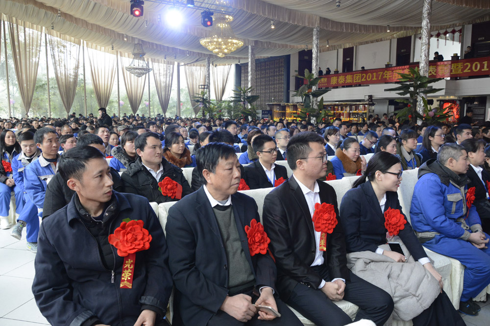 13時(shí)許,會(huì)議在雄壯嘹亮的企業(yè)之歌——《康泰之歌》中正式啟幕。大會(huì)共有五項(xiàng)議程分別是,對(duì)2017年的工作總結(jié)暨2018年度經(jīng)營(yíng)規(guī)劃、表彰2017年度先進(jìn)個(gè)人和集體、舉行迎春文藝匯演、母公司各中心宣誓、聽取董事長(zhǎng)對(duì)2018年的總體規(guī)劃和展望。