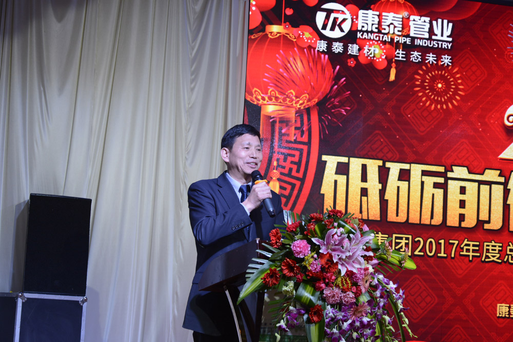會(huì)上,集團(tuán)董事長(zhǎng)兼總裁林云青發(fā)表了重要講話。林總裁首先對(duì)獲獎(jiǎng)的單位和個(gè)人表示了祝賀,對(duì)全體康泰員工在2017年的辛勤付出表示了感謝,并期望所有獲獎(jiǎng)單位和個(gè)人在工作中起好模范帶頭作用,再接再厲,頑強(qiáng)拼搏,做出更加優(yōu)異的成績(jī)。林總裁表示,今天不代表昨天,明天的成功是今天努力的結(jié)果。希望全體康泰人在2018年,再接再厲,再立新功。