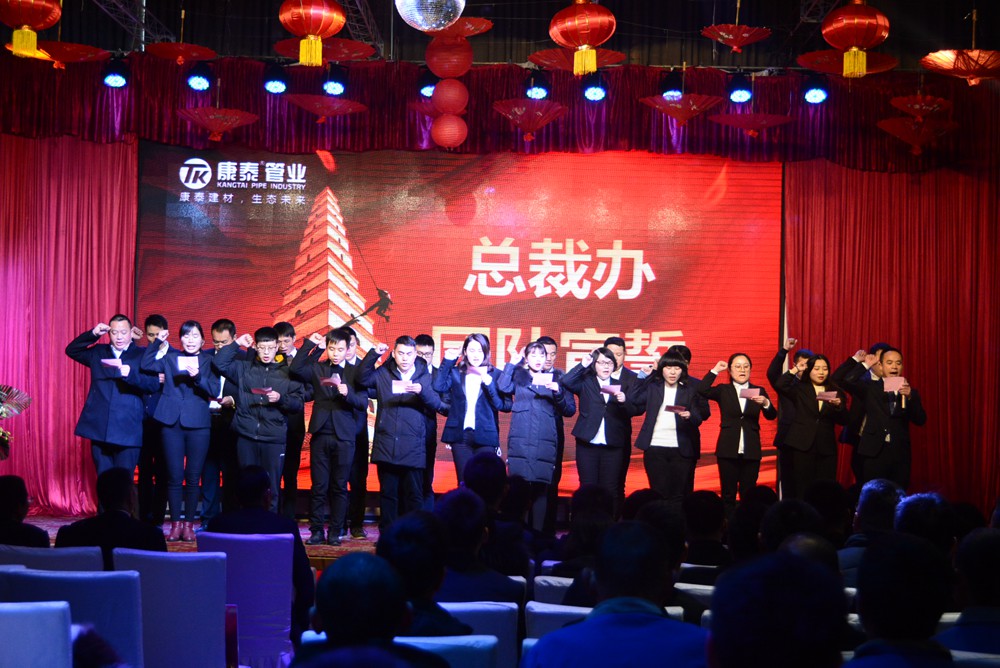 本次年會的主題是,凝聚發(fā)展 未來更好。凝聚發(fā)展:凝聚戰(zhàn)略、凝聚思維、凝聚目標(biāo)、上下貫通、發(fā)展共贏;未來更好:轉(zhuǎn)型升級、堅(jiān)定戰(zhàn)略、優(yōu)化策略、強(qiáng)化執(zhí)行、未來更好。會議的目的是,總結(jié)2018年度的業(yè)績、亮點(diǎn)和不足,宣貫集團(tuán)五年戰(zhàn)略、三年規(guī)劃及2019年度重點(diǎn)工作方向;樹立標(biāo)桿、提升員工的凝聚力和歸屬感;同時,進(jìn)行宣誓、動員,激發(fā)全體康泰人奮發(fā)向前的氛圍及正能量。