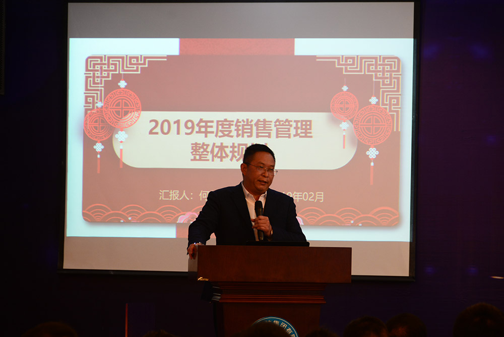 14時(shí)30分,會(huì)議正式開(kāi)始。會(huì)上,銷(xiāo)售總監(jiān)何朝暉首先向大會(huì)作了《母公司銷(xiāo)售2018年度工作總結(jié)暨2019年度工作規(guī)劃》,進(jìn)一步總結(jié)2018年度目標(biāo)達(dá)成、亮點(diǎn)及不足,清晰2019年度目標(biāo),貫徹“發(fā)展民建(戰(zhàn)略)、發(fā)展市政、發(fā)展網(wǎng)絡(luò)、整體營(yíng)銷(xiāo)”的方針,部署策略舉措,代表全體營(yíng)銷(xiāo)人員莊重承諾保證完成2019年度銷(xiāo)售目標(biāo),并為后續(xù)可持續(xù)發(fā)展儲(chǔ)備資源打下堅(jiān)實(shí)基礎(chǔ)。