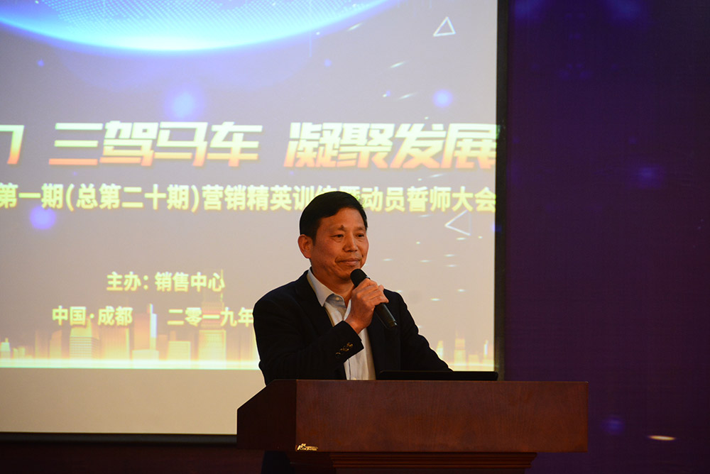 圖為銷(xiāo)售總監(jiān)何朝暉作銷(xiāo)售政策和戰(zhàn)略講解