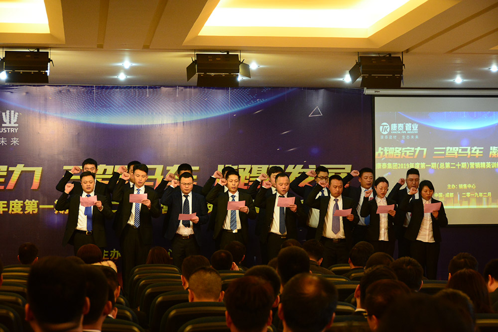 在全場(chǎng)熱烈的掌聲中,林總裁上臺(tái)作了熱情洋溢的新年致辭和動(dòng)員講話(huà)。林總裁首先對(duì)集團(tuán)公司在2018年取得的優(yōu)異業(yè)績(jī)向全體銷(xiāo)售人員的付出表示了感謝。林總裁表示,康泰的發(fā)展定位就是做中國(guó)工程集采第一供應(yīng)商,2019年是充滿(mǎn)挑戰(zhàn)的一年,也是為實(shí)現(xiàn)三年目標(biāo)打基礎(chǔ)的一年。我們要充分發(fā)揮三駕馬車(chē)——發(fā)展民建、發(fā)展網(wǎng)絡(luò)、發(fā)展市政的優(yōu)勢(shì),切實(shí)做到品牌強(qiáng)大、技術(shù)強(qiáng)大、網(wǎng)絡(luò)強(qiáng)大、團(tuán)隊(duì)強(qiáng)大,提升公司的核心競(jìng)爭(zhēng)力。