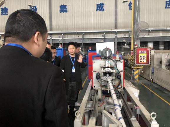 圖為技術(shù)中心鄭術(shù)友講解廠區(qū)、展廳產(chǎn)品